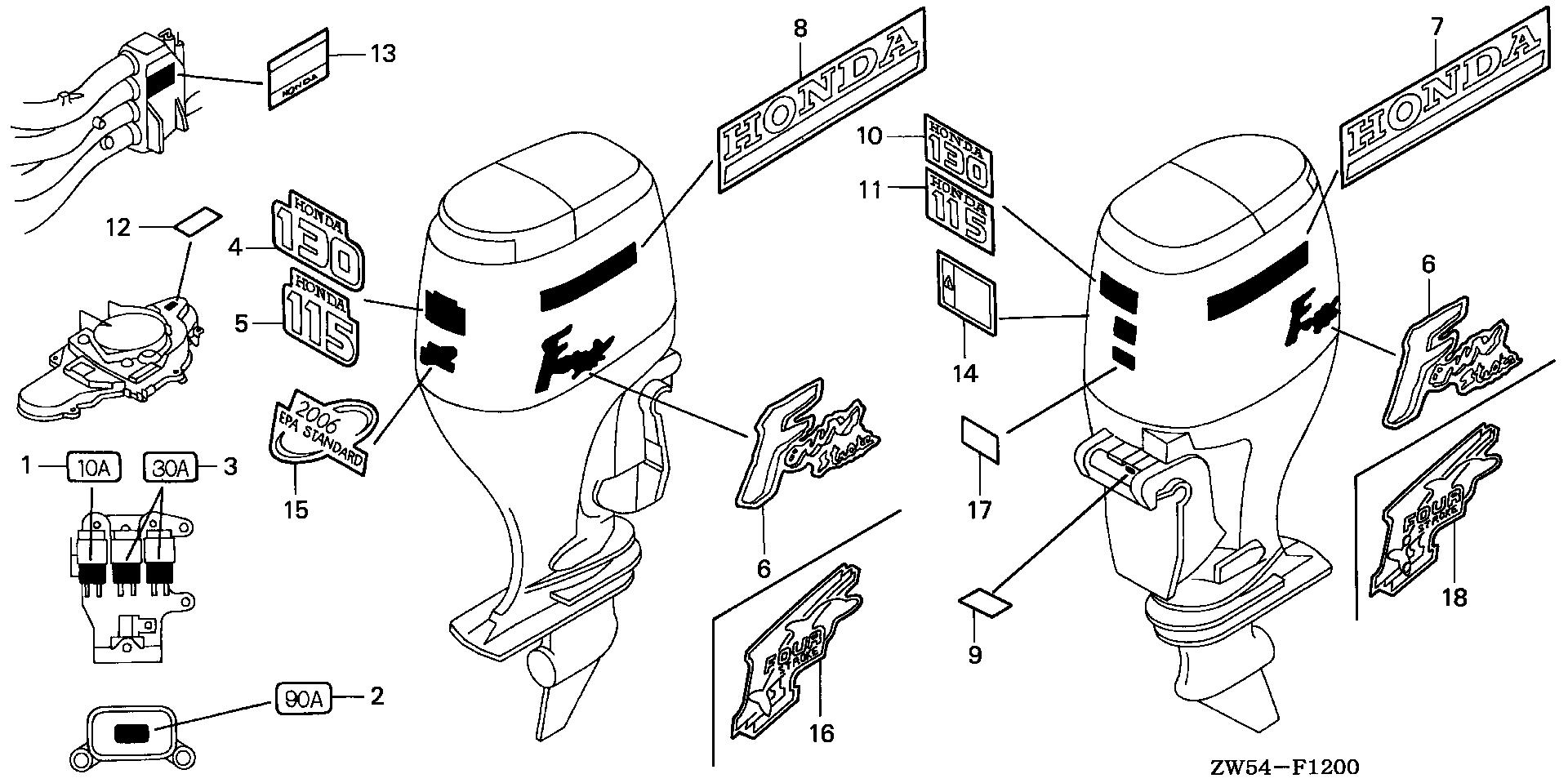 Mid - Large Outboard Engines (25 - 250hp) BF BF115 BF115A2 XA BZBD-1300001-1400000 LABELS - Plano Power Equipment