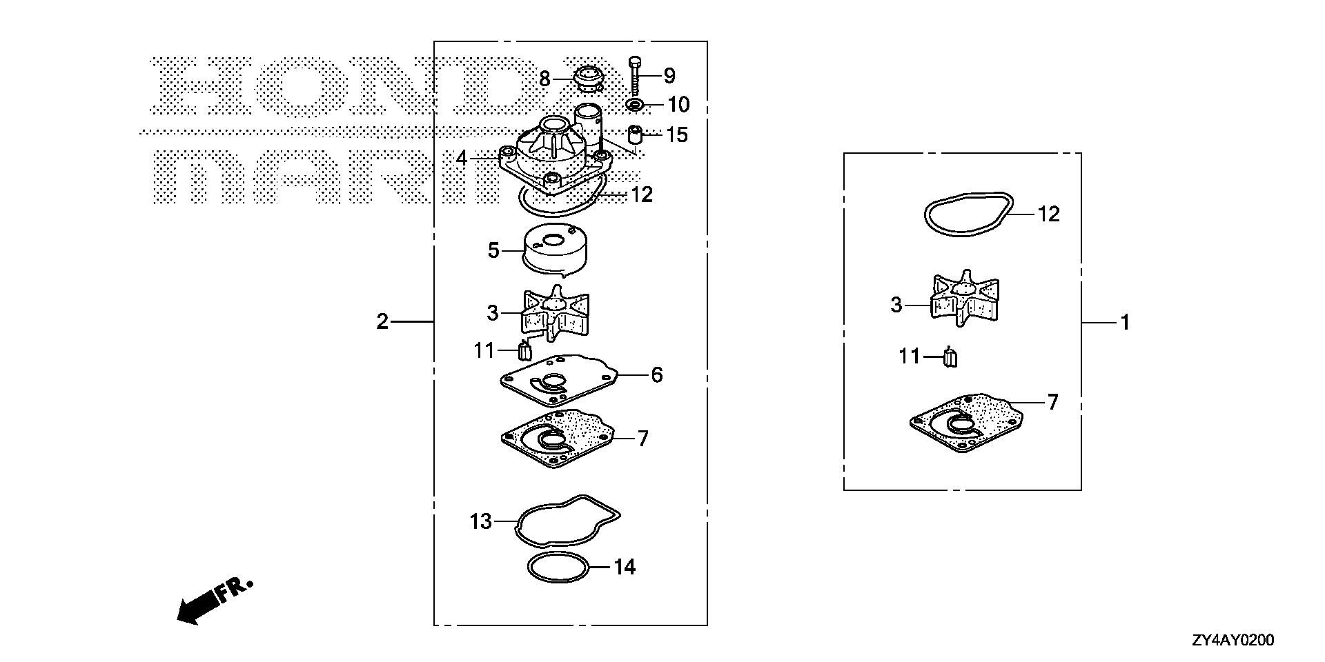 Mid - Large Outboard Engines (25 - 250hp) BF BF225 BF225AK3 XW BAGJ-1800001-1899999 WATER PUMP IMPELLER SET - Plano Power Equipment