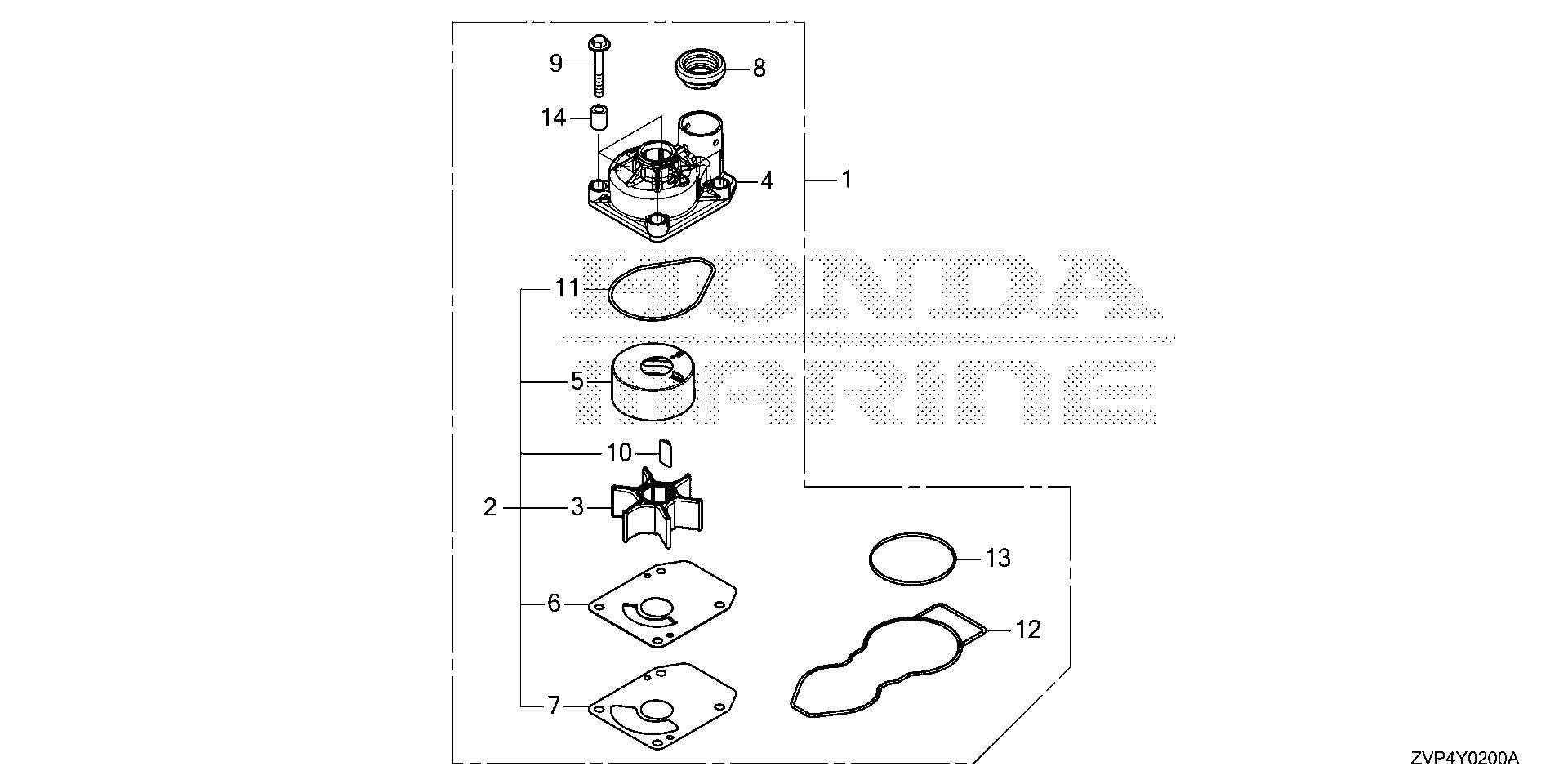 Mid - Large Outboard Engines (25 - 250hp) BF BF350 BF350A XCDA BBYJ-8000001-9999999 PUMP IMPELLER KIT - Plano Power Equipment