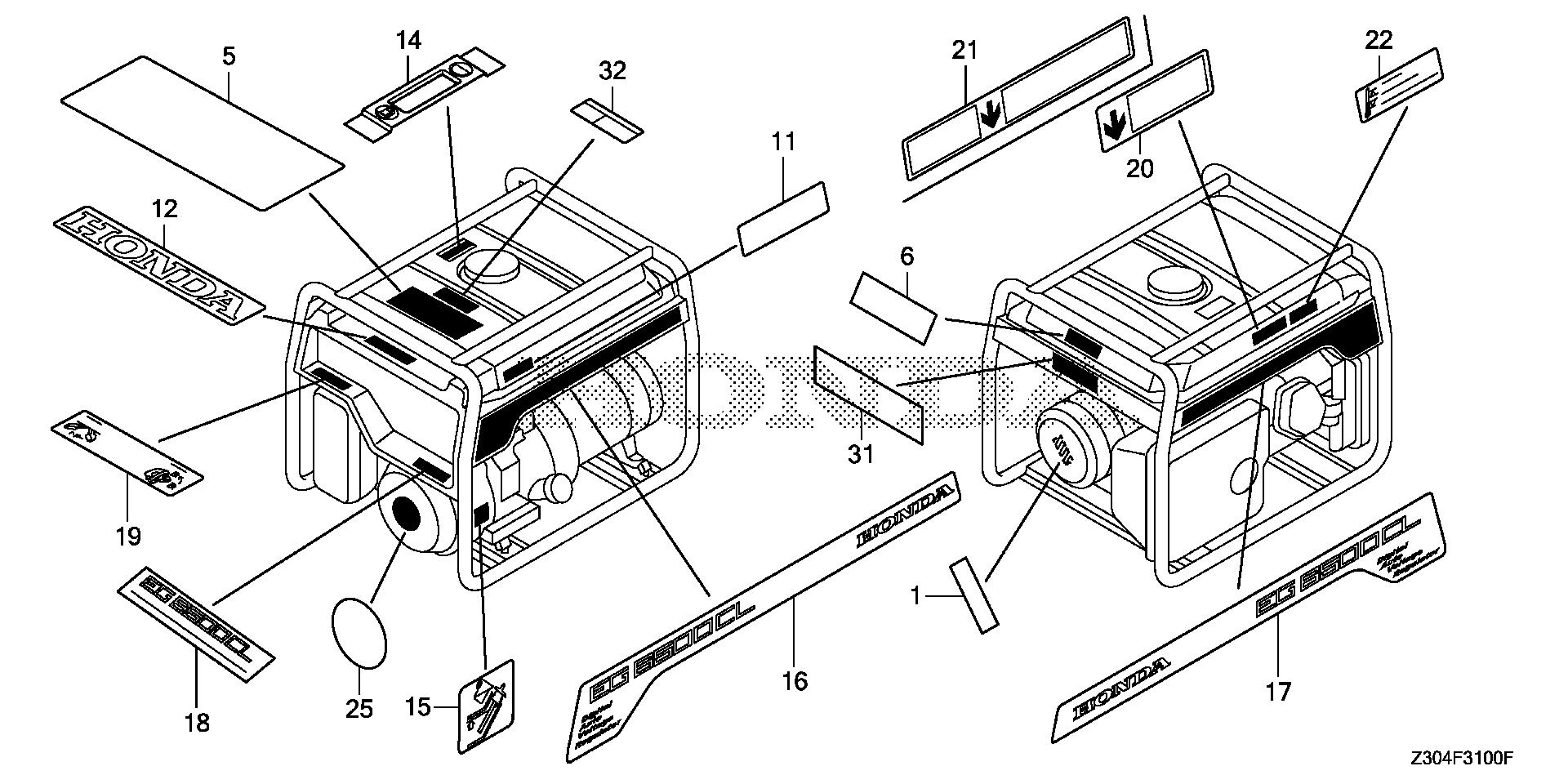 Generators EG EG6500 EG6500CL AT1/A EBBC-1500001-9999999 LABEL - Plano Power Equipment